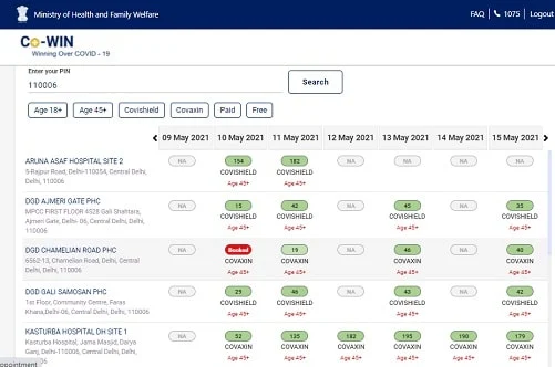 Here I have checked the vaccination center in Delhi, by using Pincode 110006. but unfortunately, there are 45+ slots are available for booking but the Delhi government refused to start vaccination for 18+. So Just wait for the new announcement for Delhi.